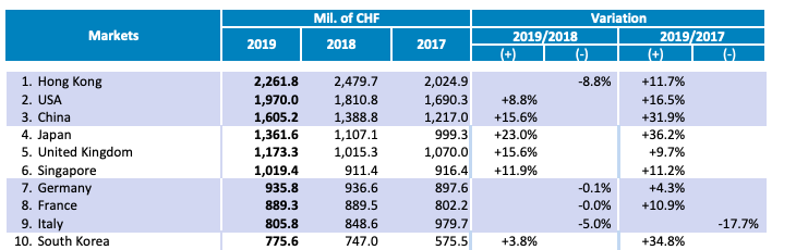 I’m always wary to focus too much on the Hong Kong angle of reporting on Swiss watch exports because declining watch exports is likely the least consequential effect of what’s happening in the Hong Kong. While Hong Kong remains the largest export market through October 2019, exports are down 8.8% on the year.