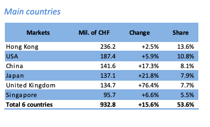 Growth in the main markets varied considerably from country to country. Exports to Hong Kong were 2.5% higher and those to the United States 5.9% up on March 2018. China (+17.3%) saw a substantial rise, as did Japan (+21.8%), which proved particularly dynamic during the first quarter. Once again, the United Kingdom (+76.4%) was up big. We’re going to go ahead and blame that on them stockpiling in the run-up to Brexit (is that still happening?). Other European markets continued to lose ground.