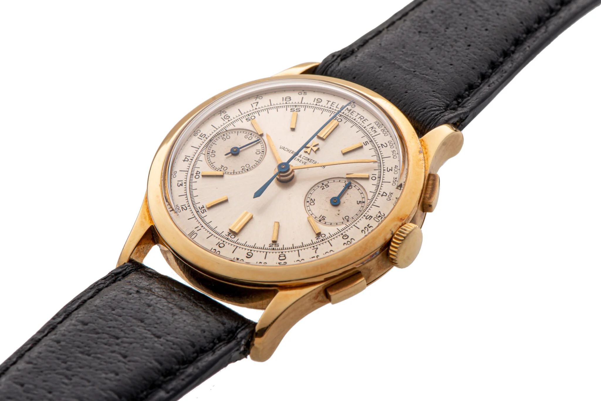 The example from Heritage was particularly notable because it was double-signed by retailer Turler. More recently, it was acquired and displayed by Vacheron’s Les Collectionneurs, the brand’s effort to highlight some of its most important vintage timepieces. Heritage sold this example for $45,000, an impressive result for what’s still a relatively small, 36mm, niche chronograph from the 1940s. Last year at Phillips Geneva, we saw a retail-signed yellow gold example (this one by Hausman), similar to this example from Heritage, sell for CHF 38k. So it’s possible the Heritage result even illustrates some appreciation in the ref. 4072 market, though only a fool would call a straight line between two data points a “trend”.